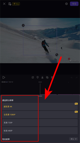 3、在彈出的選項中,根據(jù)需求選擇合適的分辨率,如超高清4K、全高清1080P等。