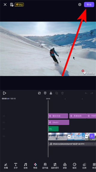 2、進入視頻編輯界面,完成視頻編輯后,點擊右上角的導出按鈕。