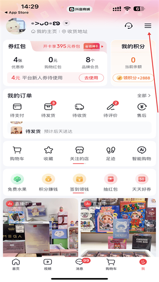 1、啟動(dòng)抖音商場(chǎng)APP,進(jìn)入首頁內(nèi)點(diǎn)擊右下角我的按鈕。