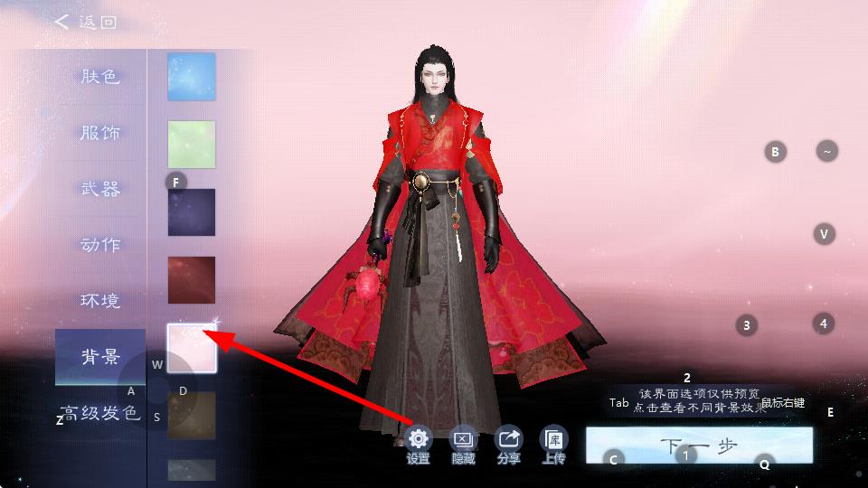 3、在背景選項的顏色塊中,選擇想要更換的背景顏色。