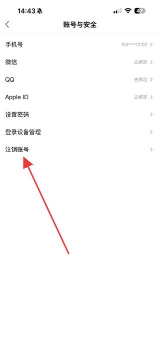 4、在賬號(hào)與安全頁(yè)面,點(diǎn)擊注銷(xiāo)賬號(hào)選項(xiàng),按照提示完成賬號(hào)注銷(xiāo)操作即可。
