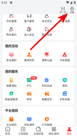 1、打開運滿滿司機APP,進(jìn)入我的頁面,點擊設(shè)置進(jìn)入設(shè)置界面。