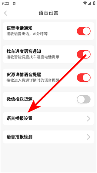 3、在語音設(shè)置頁面點擊語音播報設(shè)置,進(jìn)入語音包配置頁面。
