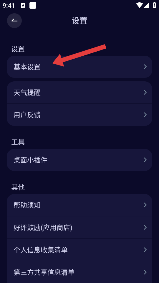 2、在設(shè)置的頁面,需要點擊基本設(shè)置選項,進入基本設(shè)置的界面。