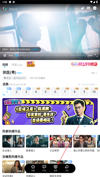 3、進(jìn)入播放的界面內(nèi),點(diǎn)擊最下方投屏的功能按鈕即可完成。