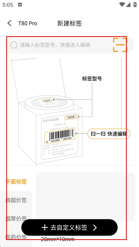 3、選擇完成后,進(jìn)入新建標(biāo)簽頁面,可通過掃一掃或輸入標(biāo)簽型號(hào)快速編輯。