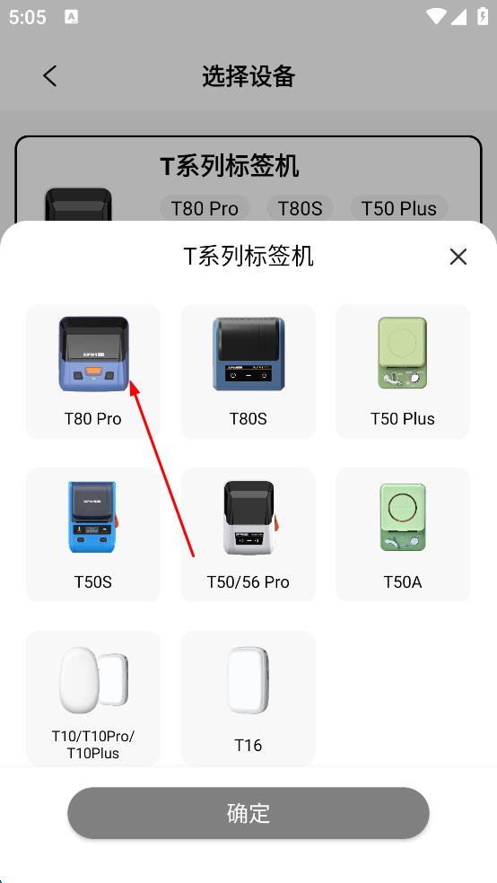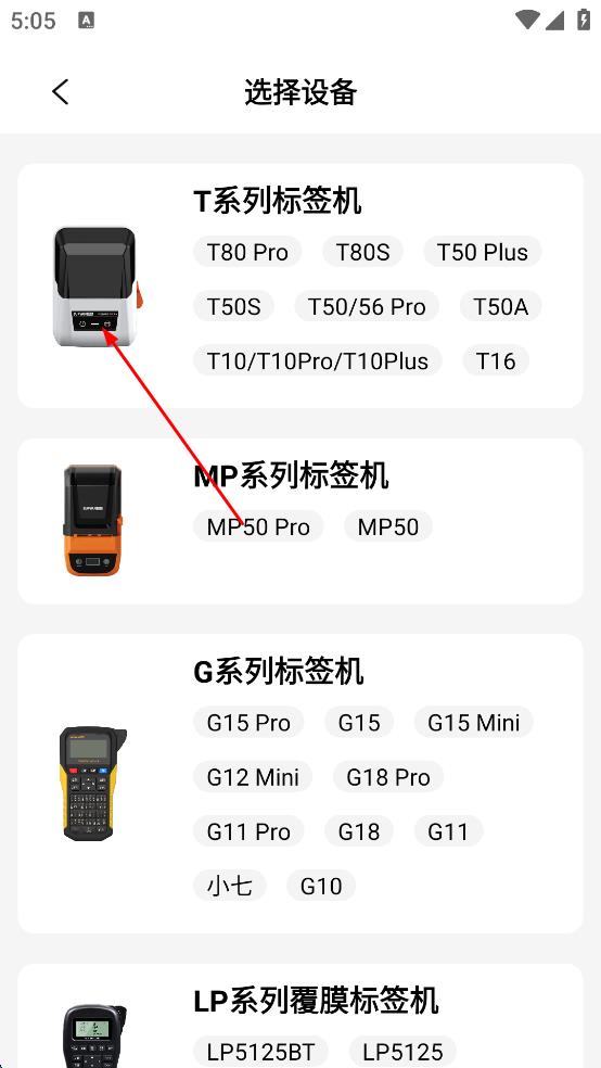2、在選擇設(shè)備頁面,選擇對(duì)應(yīng)的標(biāo)簽機(jī)系列,再選擇具體的標(biāo)簽機(jī)型號(hào)。