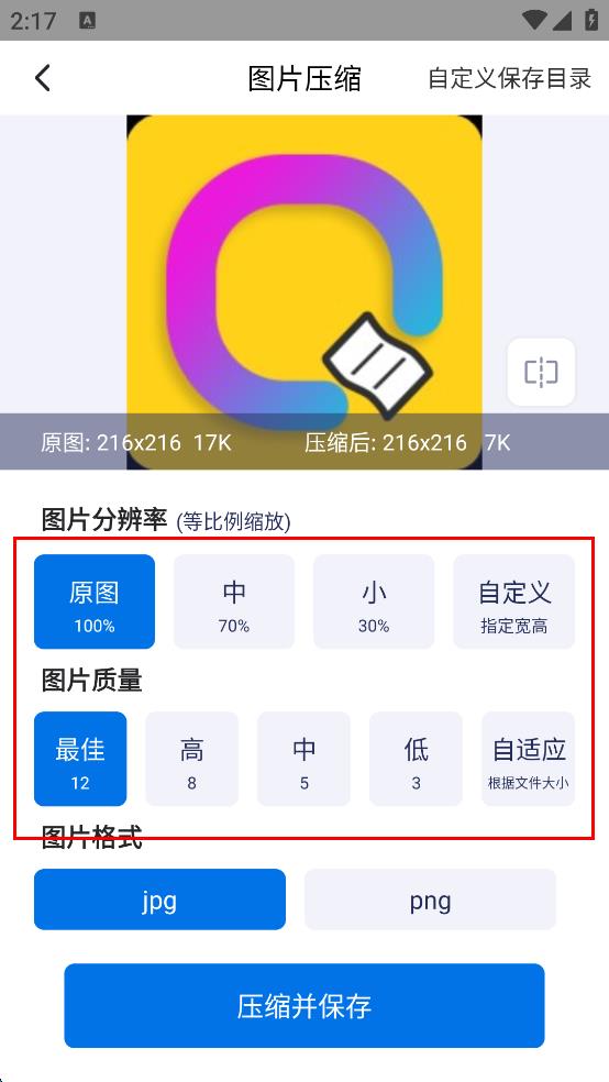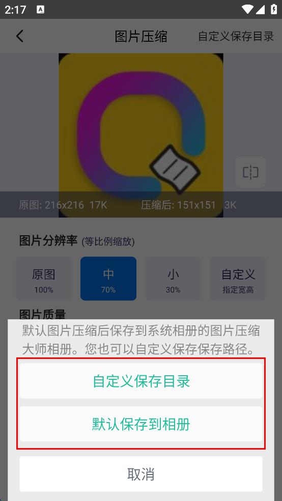 2.支持調(diào)整壓縮的尺寸和壓縮的質(zhì)量