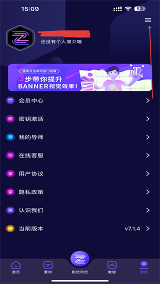 2、進(jìn)入個(gè)人中心的頁面內(nèi),點(diǎn)擊右上三個(gè)橫線的圖標(biāo)。