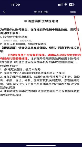 4、熟知注銷內(nèi)容后,點(diǎn)擊右上同意的按鈕即可。
