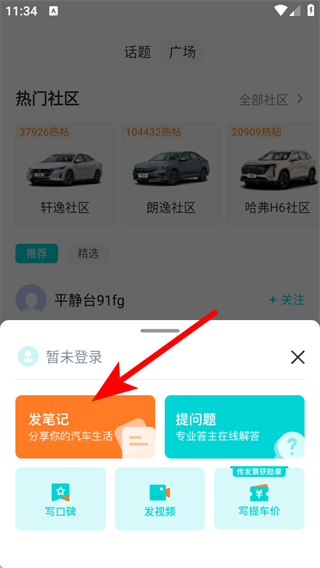 3、在菜單中我們需要選擇發(fā)筆記,進(jìn)入發(fā)筆記編輯的頁面。