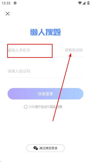 3、在登錄頁面的輸入框中,填寫手機號并獲取驗證碼。