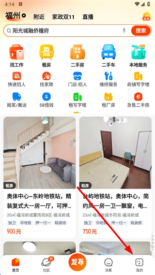 1、打開58同城APP,點擊右下角我的進入個人頁面。