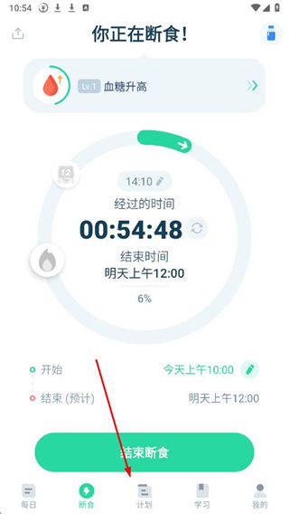 1、打開斷食追蹤APP,點(diǎn)擊導(dǎo)航欄中的計(jì)劃。