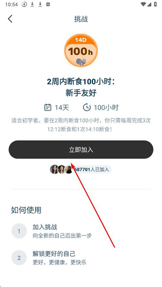 3、進(jìn)入所選計(jì)劃詳情頁面后,點(diǎn)擊立即加入,即可加入該斷食計(jì)劃。