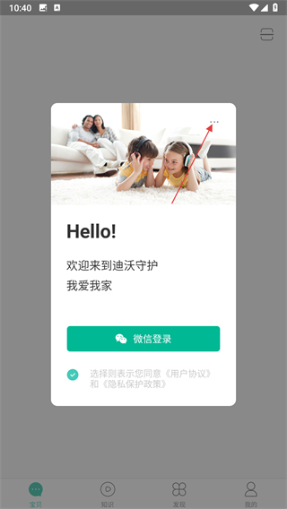 1、打開迪沃守護(hù)應(yīng)用,點擊登錄界面右上角的三點按鈕。
