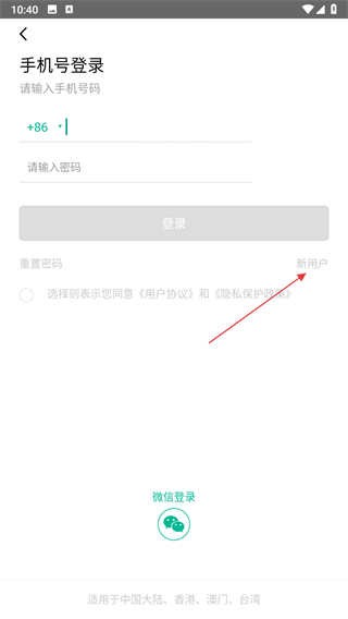 2,、進(jìn)入手機(jī)號登錄界面,再點擊右下角的新用戶選項。