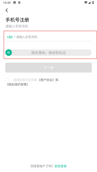 2、輸入手機(jī)號碼,拖動滑塊到右邊完成驗證,點擊下一步。