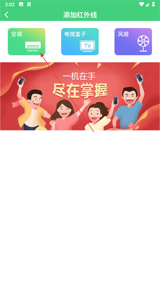 2、在添加紅外線頁(yè)面,點(diǎn)擊空調(diào)選項(xiàng),進(jìn)入選擇界面。