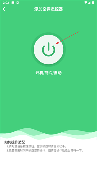 4、在添加空調(diào)遙控器頁(yè)面,對(duì)準(zhǔn)空調(diào)按鈕,待空調(diào)響應(yīng)即可。