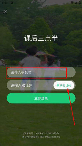3、進入登錄頁面,填寫手機號,點擊獲取驗證碼按鈕。