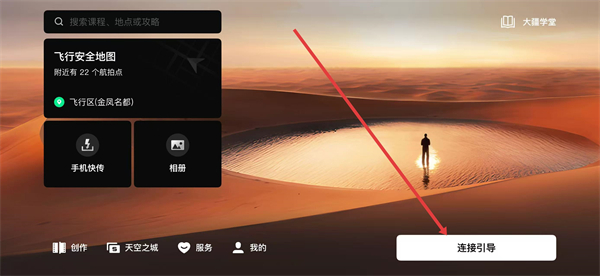 1.打開DJI Fly應(yīng)用,點(diǎn)擊底部連接引導(dǎo)按鈕。
