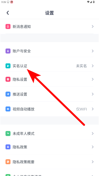 4、在設(shè)置界面里,點擊實名認證選項,按照后續(xù)提示完成實名認證操作。