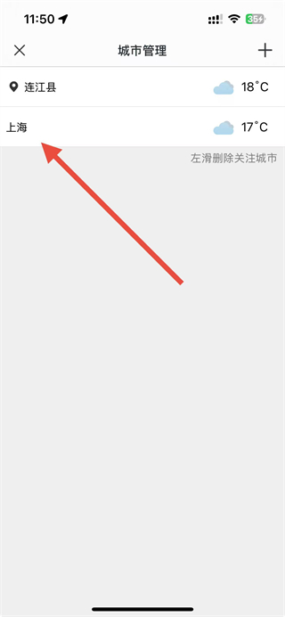 4、選擇城市后,該城市會(huì)出現(xiàn)在城市管理頁(yè)面的關(guān)注列表中,點(diǎn)擊即可查看其天氣信息。