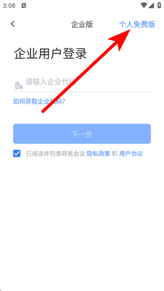 2、在登錄界面,點(diǎn)擊個(gè)人免費(fèi)版,切換到個(gè)人版登錄的頁(yè)面。