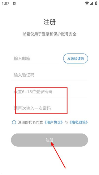 4、根據(jù)要求設(shè)置密碼,點(diǎn)擊注冊(cè)即可完成注冊(cè)。