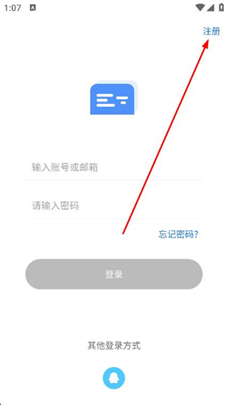 2、在我的頁(yè)面中,點(diǎn)擊右上角的注冊(cè)選項(xiàng)。