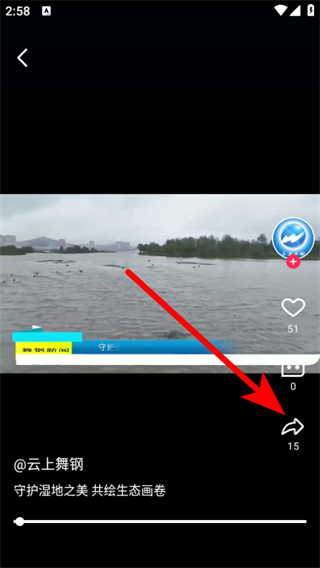 3、在視頻播放的頁面,點(diǎn)擊右下角分享圖標(biāo),彈出分享選項(xiàng)框。
