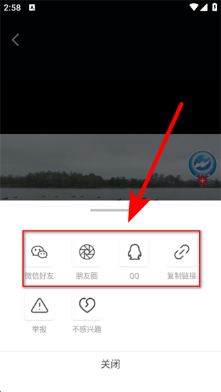 4、在選項(xiàng)框中,可選擇微信好友等分享方式,完成視頻分享操作。