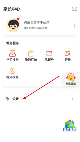 1、在家長中心的頁面,需要點擊設置的按鈕,進入設置頁面。