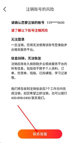 4、點擊聯(lián)系客服,按照提示完成賬號注銷操作即可。