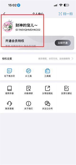 1、打開自定義水印相機(jī)應(yīng)用,點(diǎn)擊左上角的頭像進(jìn)入個(gè)人中心。