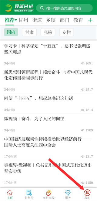 1、打開視聽甘州app,點擊底部我的按鈕,進入個人的頁面。