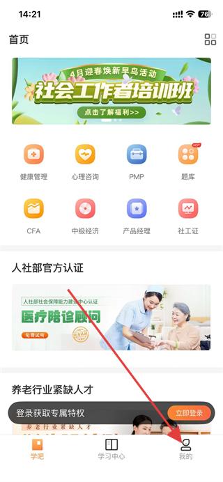 1、打開登塔學(xué)苑app,點(diǎn)擊底部導(dǎo)航欄我的選項(xiàng)。