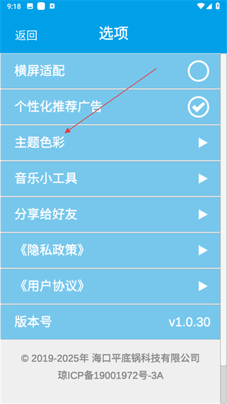 2、在選項頁面,點擊主題色彩選項。