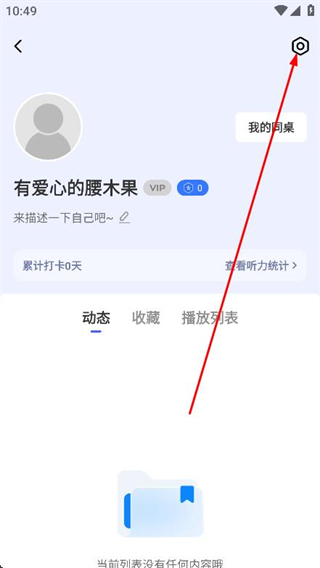 3、在個(gè)人主頁(yè)中,點(diǎn)擊右上角的設(shè)置圖標(biāo),進(jìn)入個(gè)人信息頁(yè)面。