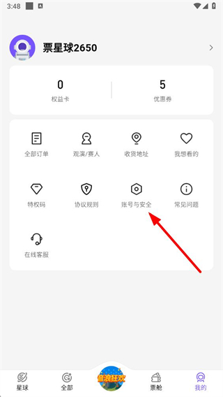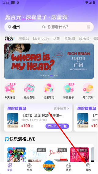 1、在票星球app首頁點擊我的選項,進入個人頁面。