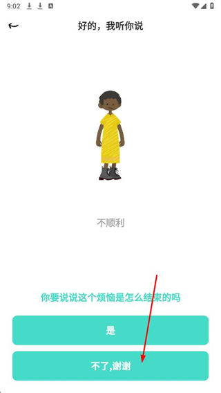 3、在好的,我聽你說頁面,根據(jù)提示選擇是否分享煩惱解決的過程,選擇不了,謝謝。