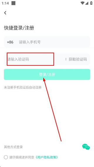 3、將驗(yàn)證碼填入輸入框,點(diǎn)擊登錄/注冊即可完成登錄。