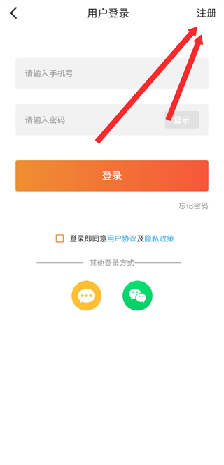 3、在用戶登錄的界面,點擊右上角注冊,進(jìn)入注冊的頁面。
