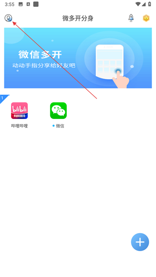 1、打開微多開分身應(yīng)用,點擊左上角的個人頭像圖標(biāo)。