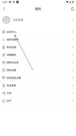 2、在我的頁面,點擊會員中心選項,進入會員頁面。