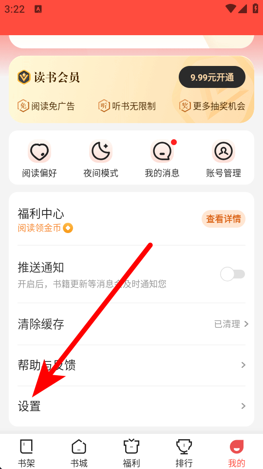 1、在閱友小說書城頁面,點擊右下角我的選項,進(jìn)入個人頁面。