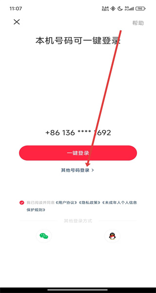 2、在本機(jī)號(hào)碼可一鍵登錄頁(yè)面,點(diǎn)擊其他號(hào)碼登錄切換至手機(jī)號(hào)登錄界面。