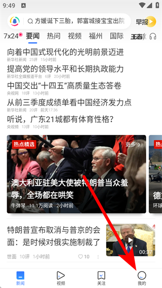 1、打開騰訊新聞APP,點(diǎn)擊底部導(dǎo)航欄我的,進(jìn)入個(gè)人頁面。
