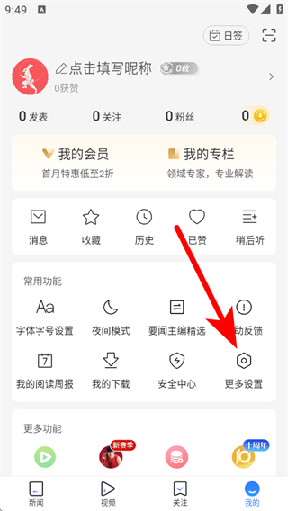 2、在個(gè)人的頁面,需要點(diǎn)擊更多設(shè)置的按鈕,進(jìn)入設(shè)置的頁面。